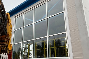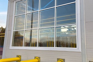 Противопожарный витражи Е30 с узлами ЛСК для алюминиевой стоечно-ригельной системы, г. Санкт-Петербург, Газпром